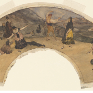 In this evocative rendering of Neptune’s Fountain, the classical meets the contemporary through the elegance of omission. The god of the sea stands at the heart of the composition — poised, commanding, yet rendered with a softness that feels almost spectral. Surrounding him, the architecture dissolves into washes of sienna and smoke, as though the city itself is surfacing from memory.